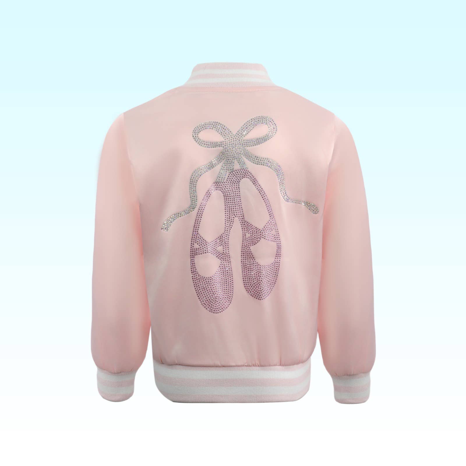 Add this stunning Rhinestone Ballet Satin Bomberbto your dancer's wardrobe. Featuring a comfortable satin material and beautiful ballet slipper detail with rhinestones, this bomber is perfect for your dance girl. The zipper even adds a touch of elegance with a charming heart design. Elevate their style and comfort with this unique piece.