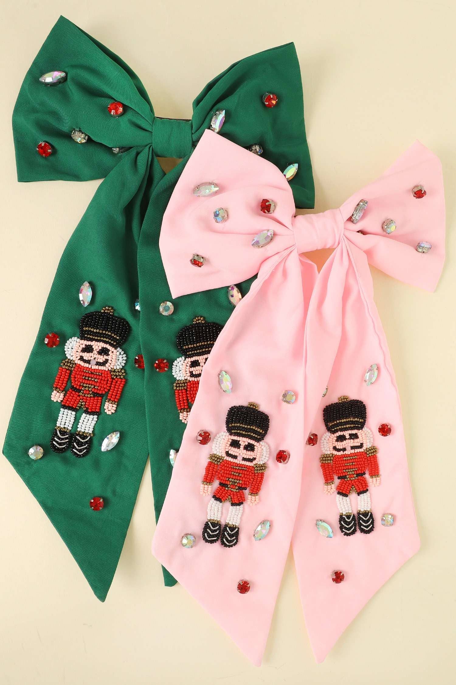 CHRISTMAS NUTCRACKER CRYSTAL BEAD EMBROIDERED BOW BARRETTE HAIR CLIP